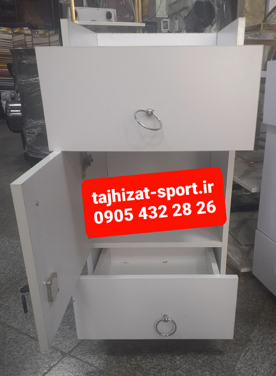 ترولی چوبی آرایشگاهی در رنگ سفید مشکی